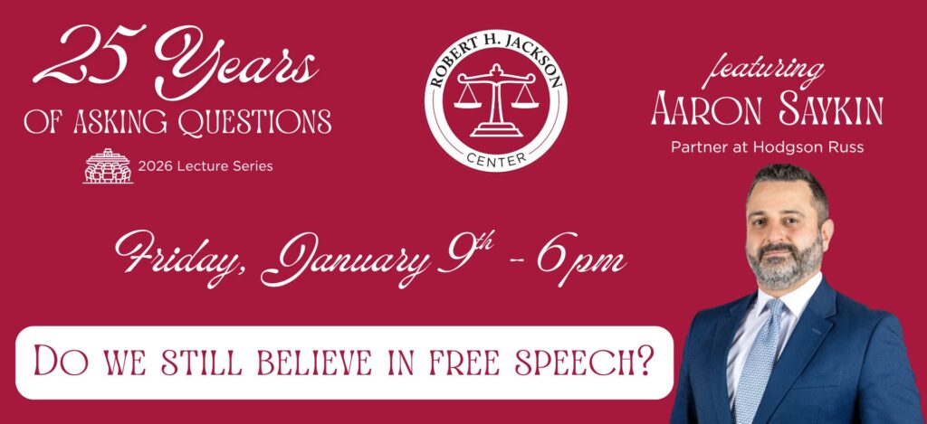 The Robert H. Jackson Center is a non-profit, non-partisan educational organization that is dedicated to presenting accurate and balanced information about complex issues. The opinions expressed by various guest speakers, panelists, and authors do not necessarily reflect the views of the Center, its Board, and supporters.